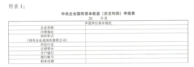 附表:1.中央企业国有资本收益(应交利润)申报表